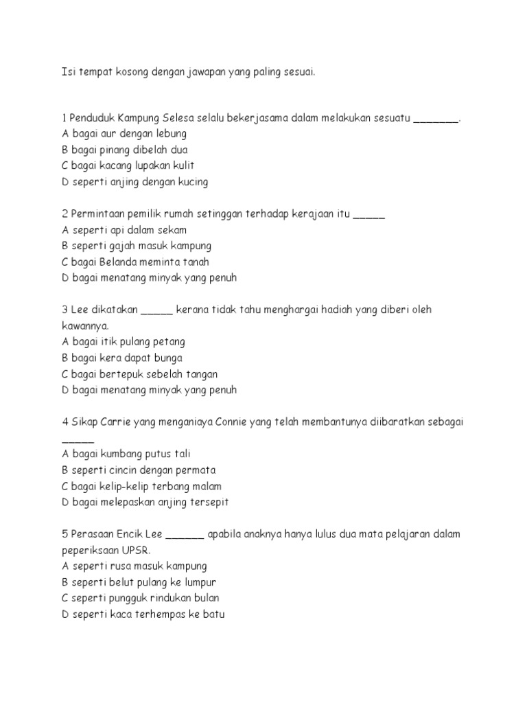 Senarai Peribahasa Dan Simpulan Bahasa Dalam Buku Teks Tahun 4 Pdf
